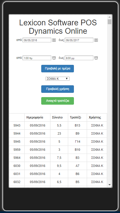 Μπορείτε να δείτε ανά ημερομηνία, ανά ώρα και ανά υπάλληλο.