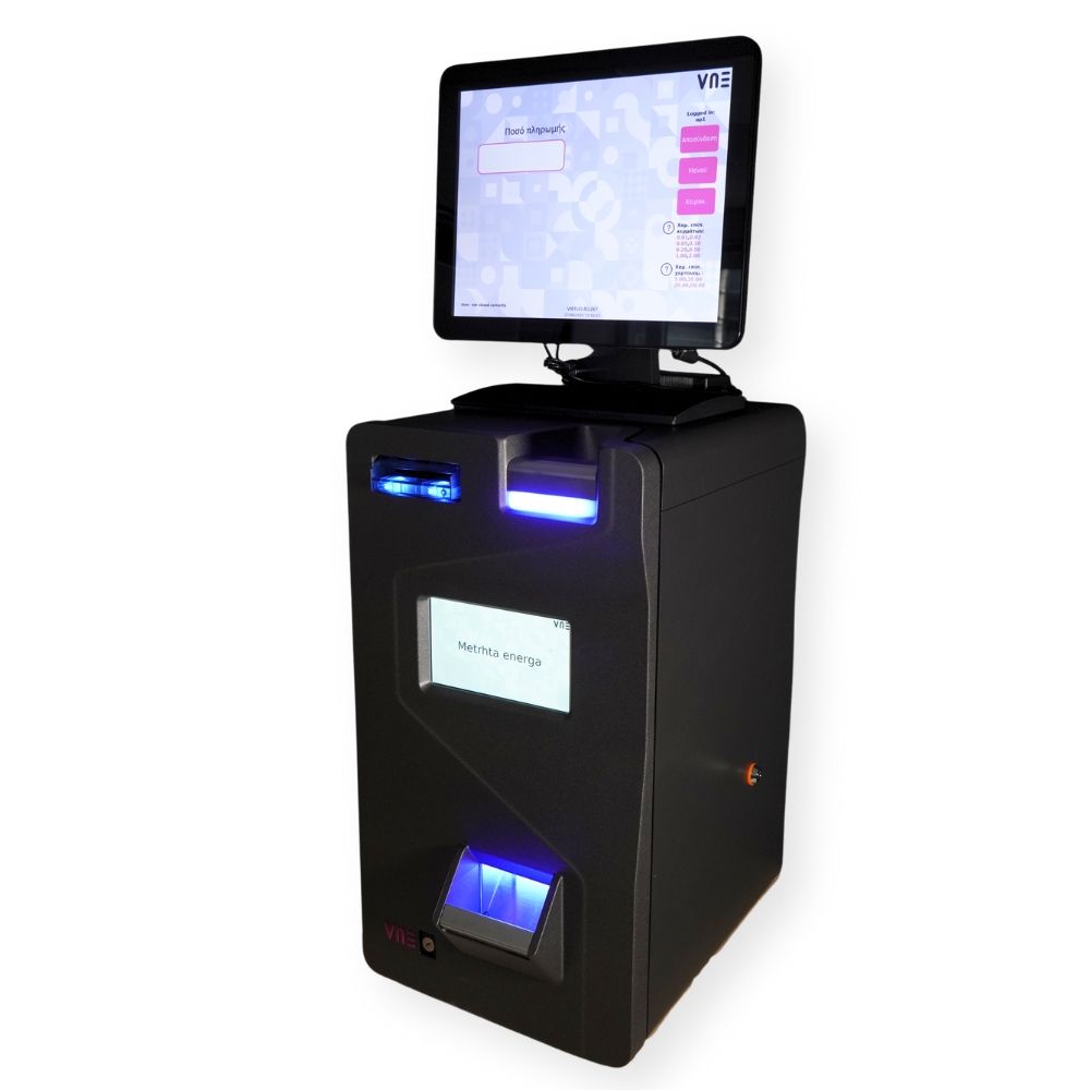 Αυτόματο ταμείο για πληρωμές μετρητά, ρέστα, έλεγχο πλαστότητας, καταμέτρηση.